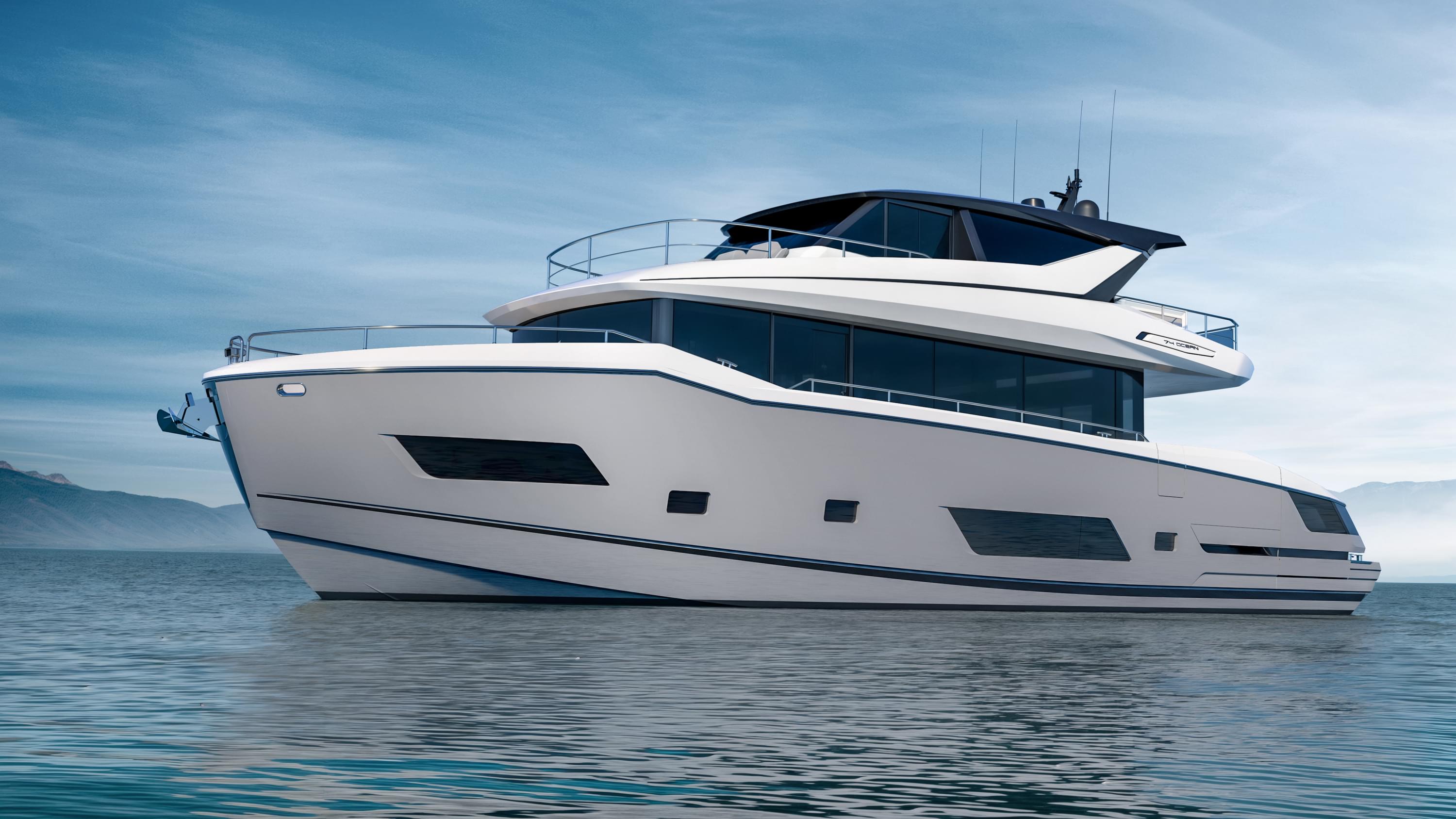 Below deck, the 74 Ocean reveals a full-beam master cabin complete with a private en-suite, offering a haven of tranquillity. Three further guest cabins, each with their own en-suite, ensure every detail of comfort is extended throughout. Dedicated crew accommodation for two, with discreet access from the side decks and direct entry to the engine room, preserves guest privacy on every voyage.