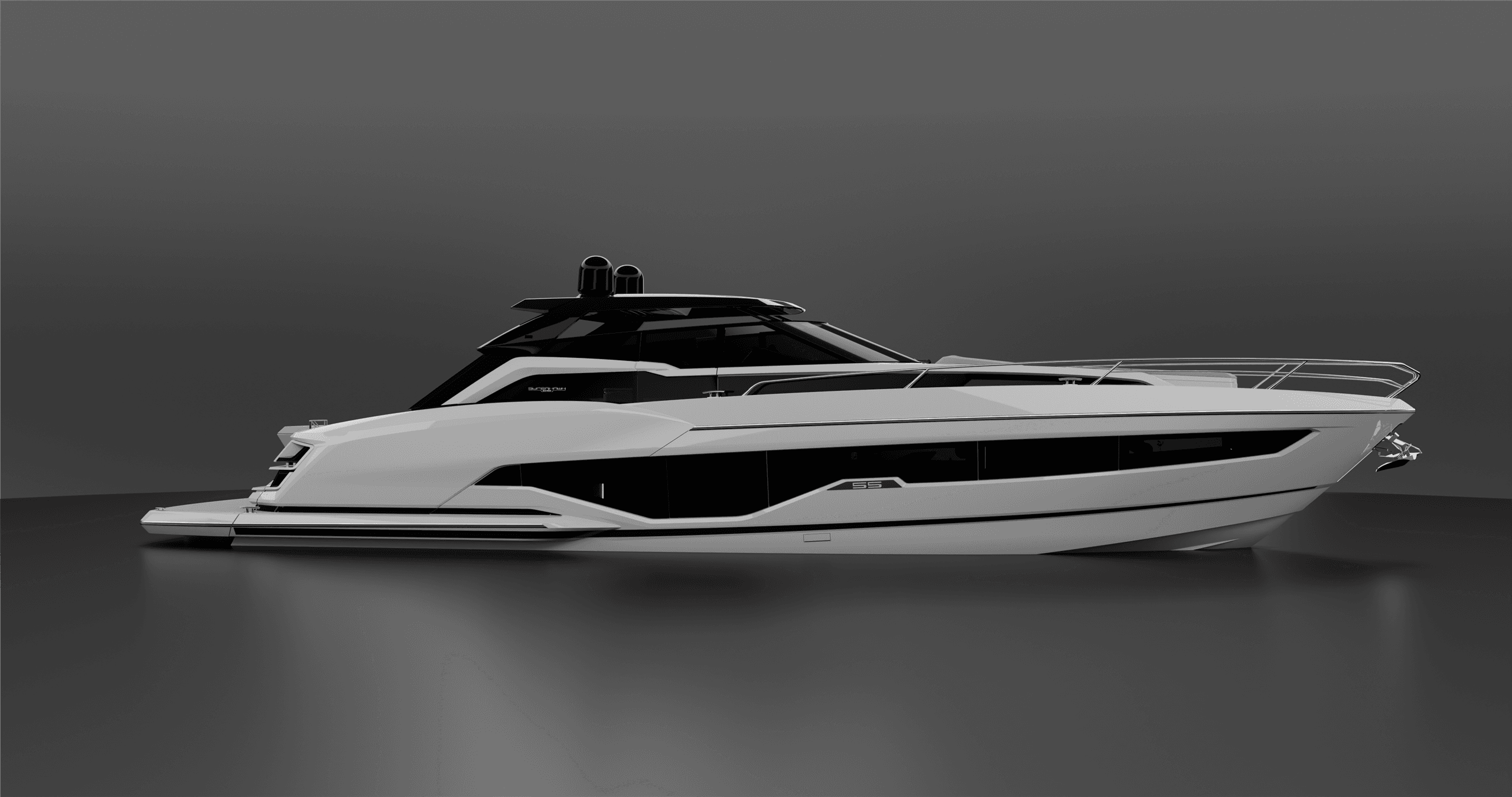 Aesthetic styling is prevalent in every detail. The yacht profile turns heads with stainless steel air intake cowlings and exterior handrails, contributing to the high-quality finish. There is an enhanced material selection, with new exterior upholstery and moulding options. Adventurous buyers will be captivated by a choice of four new grey hull colours. Overall, the exterior is aggressive and imposing, with a new, angular hull and superstructure glazing design.