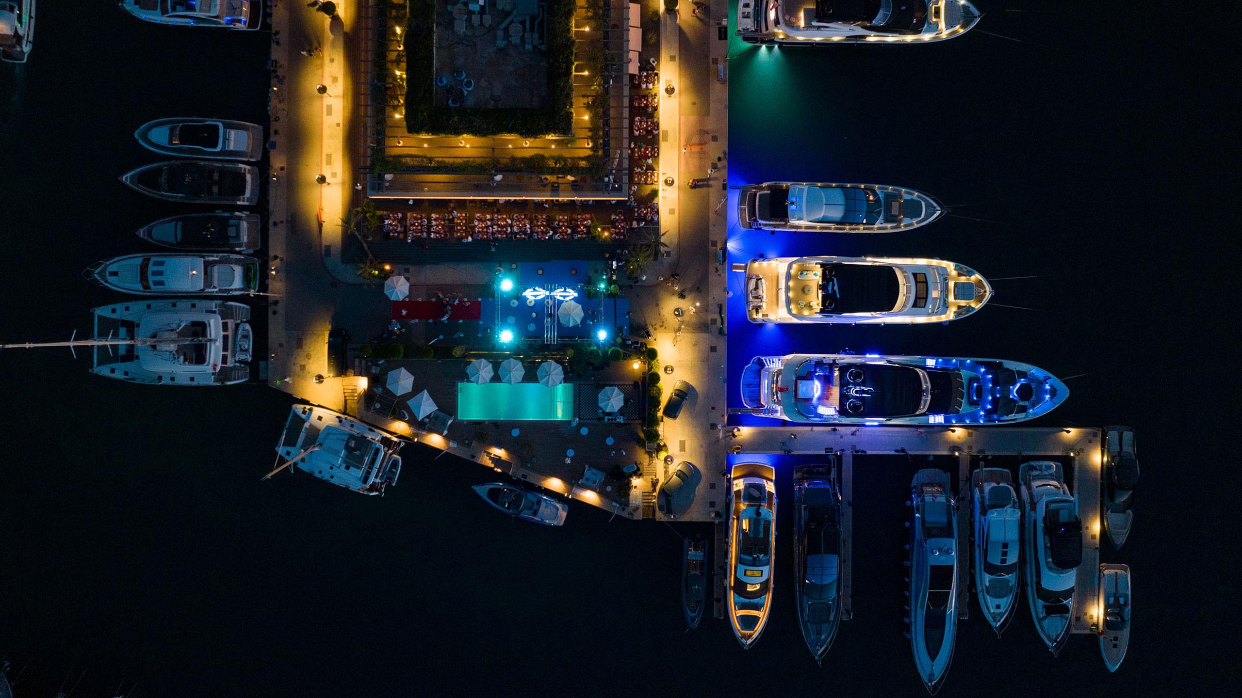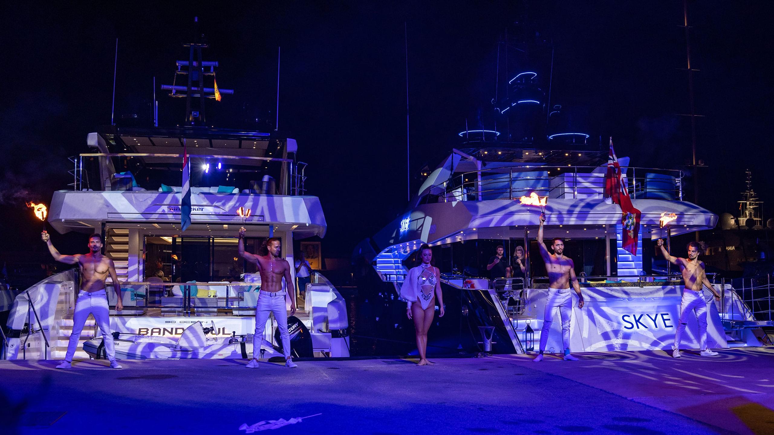 Invited guests enjoyed live music from two bands, a captivating performance of acrobatics and dance, a gourmet menu curated by Coast by East chef, Gustavo Martin Moreno, and a party that carried on until sunrise! Positioned in the heart of the marina, an entire fleet of Sunseekers surrounded the event, including a 116 Yacht, 90 Ocean, Predator 74 and 65 Sport Yacht, all lit by a cleverly curated lightshow.